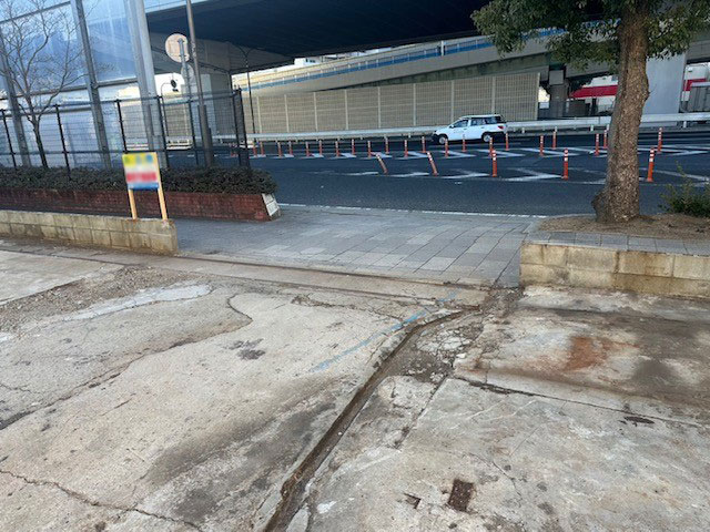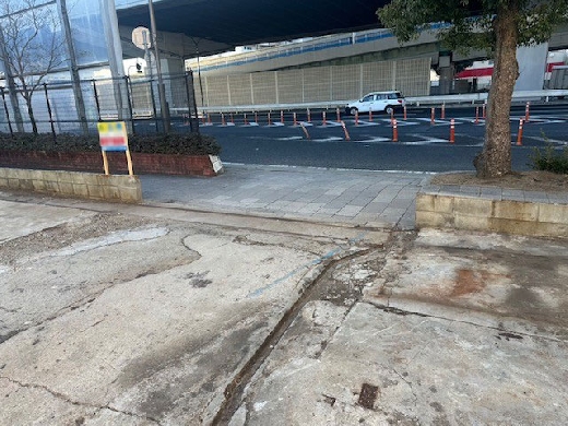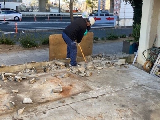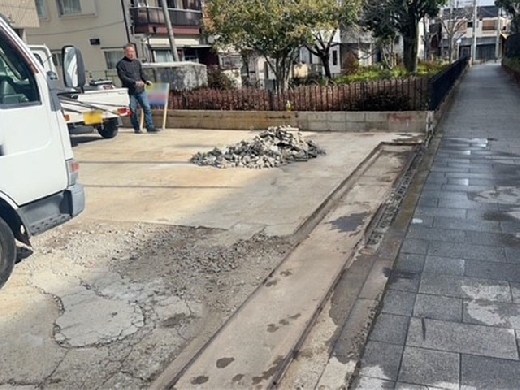 駐車場 へトラックが出入りしやすい様にブロックを解体し、入口の間口を広げました。